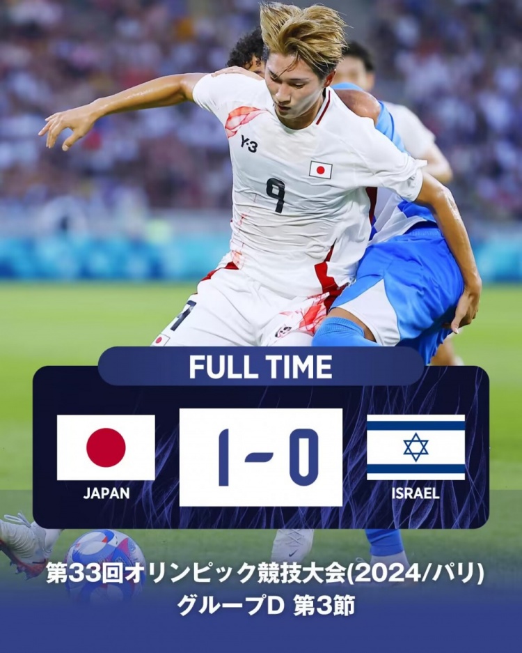 奥运男足-日本1-0绝杀以色列&3场全胜头名出线 1/4决赛将战西班牙