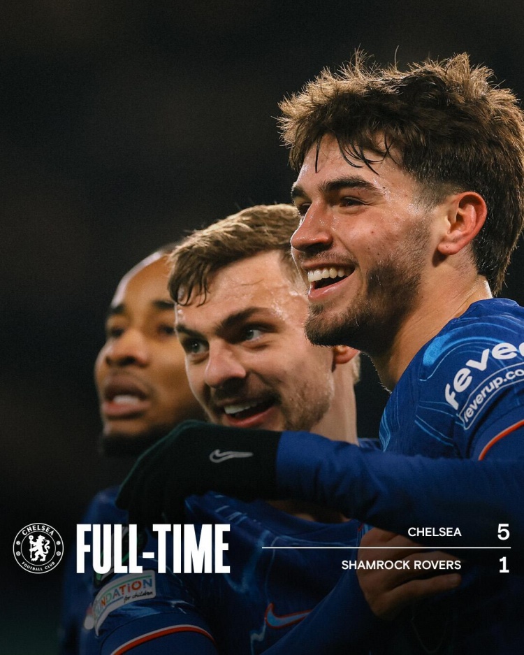 欧协联-切尔西5-1沙姆洛克流浪6战全胜 吉乌半场戴帽恩昆库2助