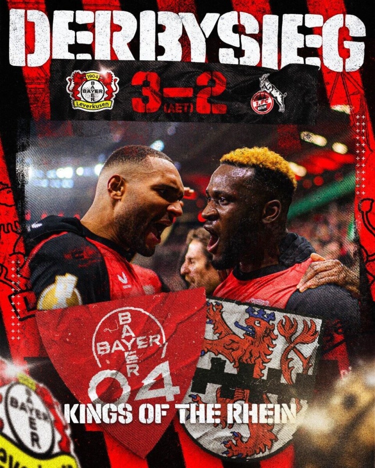 2月6日讯 北京时间2月6日3:45,德国杯1/4决赛,勒沃库森坐镇主场拜耳竞技场迎战科隆。上半场,格里马尔多任意球中横梁,达米恩反击破门。下半场,林顿-麦纳反击扩大比分,维尔茨助攻希克扳回一城,补时阶段希克头球绝平。加时赛,博尼法斯抢射破门将比分反超,伊玛德破门但越位在先。最终,勒沃库森加时赛3-2逆转击败科隆,晋级四强。