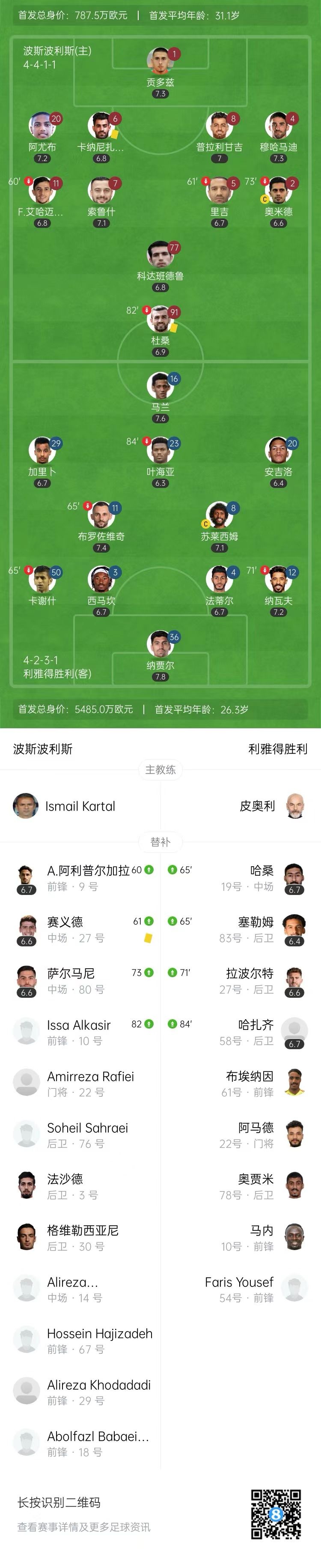 2月18日讯 北京时间2月18日0:00,亚冠精英联赛西亚区第8轮,利雅得胜利做客阿扎迪球场挑战波斯波利斯。上半场,艾哈迈德扎赫德错失破门良机,卡纳尼扎德甘、杜桑先后染黄。下半场,叶海亚推射偏出失良机。最终,利雅得胜利客场0-0闷平波斯波利斯,多赛1场积17分,落后利雅得新月和吉达国民2分,锁定积分榜第三。
