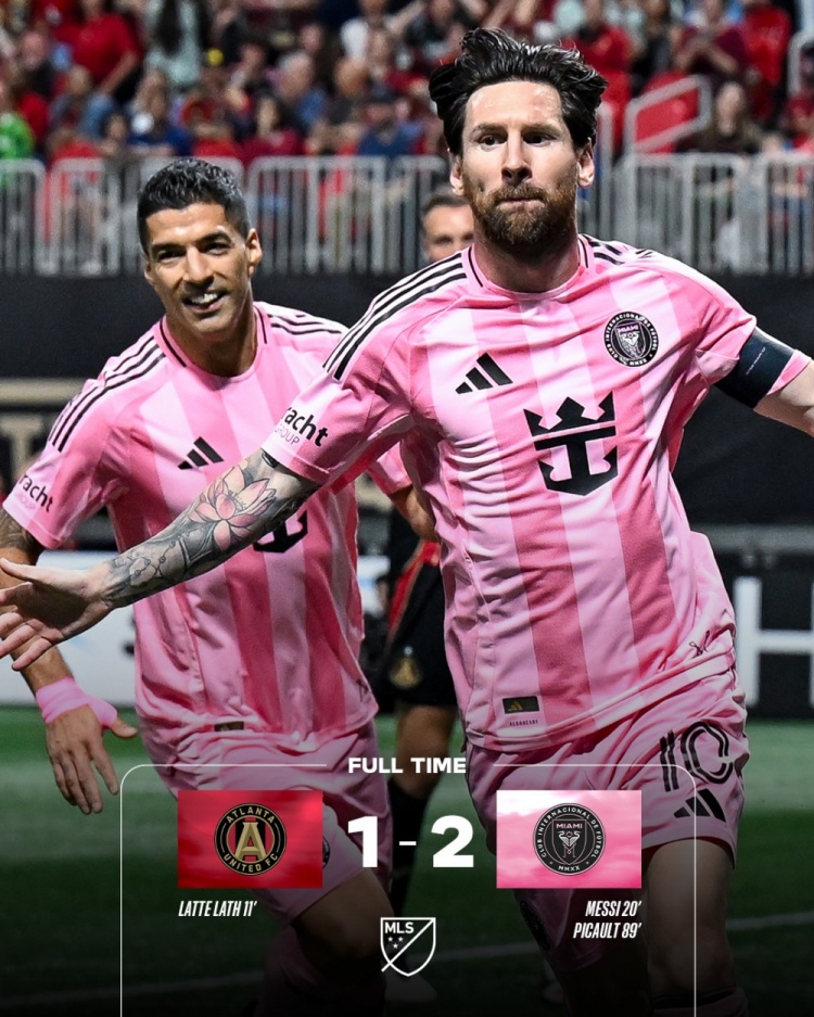 全比赛结束,迈阿密国际2-1亚特兰大联。