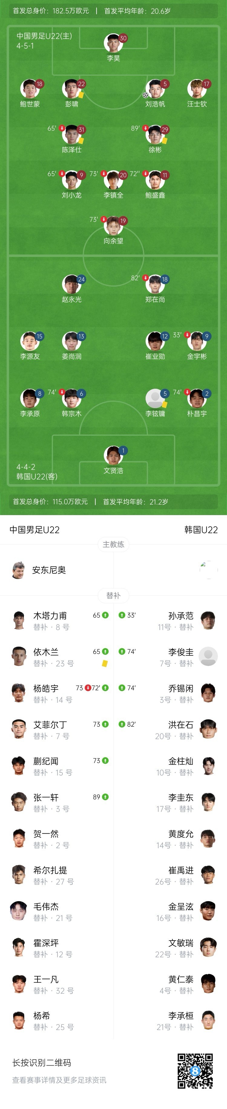 全场比赛结束,国足U22主场1-0绝杀韩国。↓