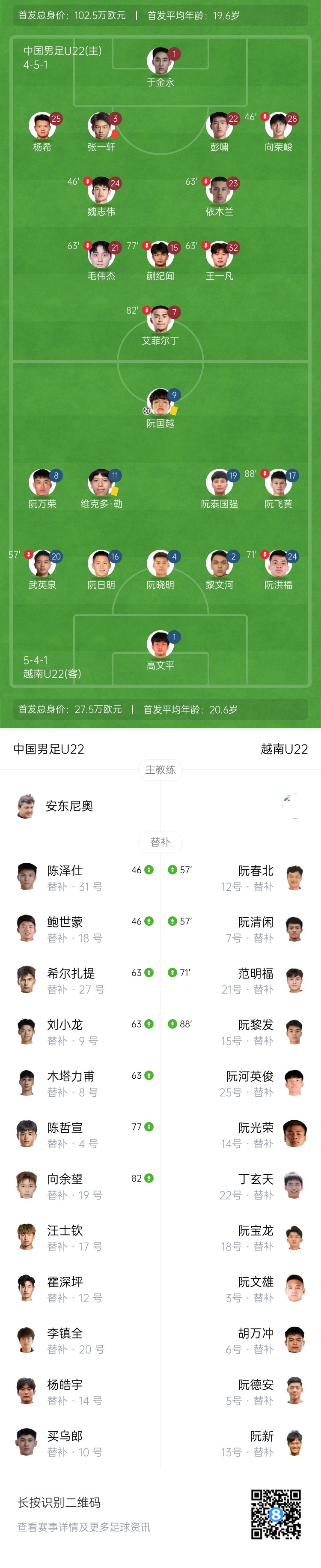 一胜二平不败夺冠!U22国足1-1越南U22 艾菲尔丁点射张一轩染红