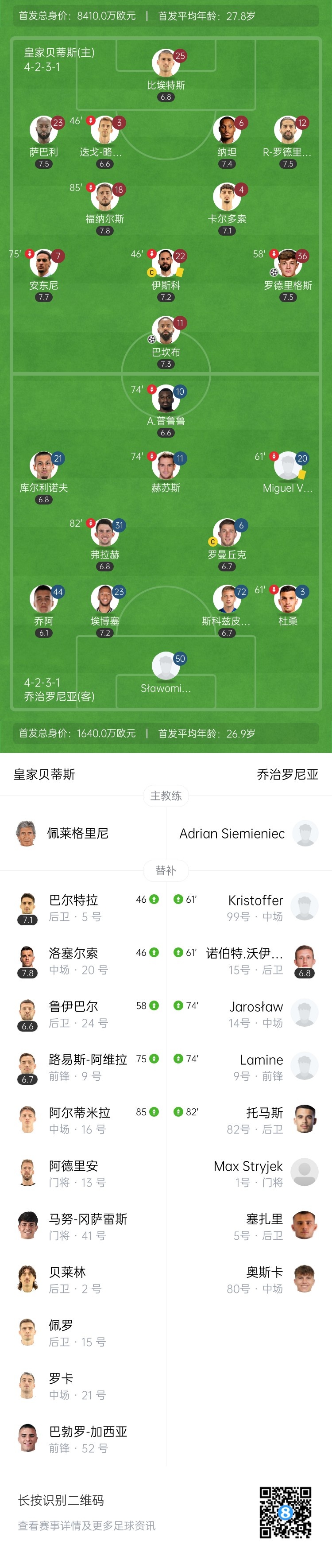 第9分钟,贝蒂斯反击,巴坎布推进到右路,传中找到禁区内的伊斯科!伊斯科分球左边空位的队友,赫苏斯-罗德里格斯好机会一脚打飞了↓