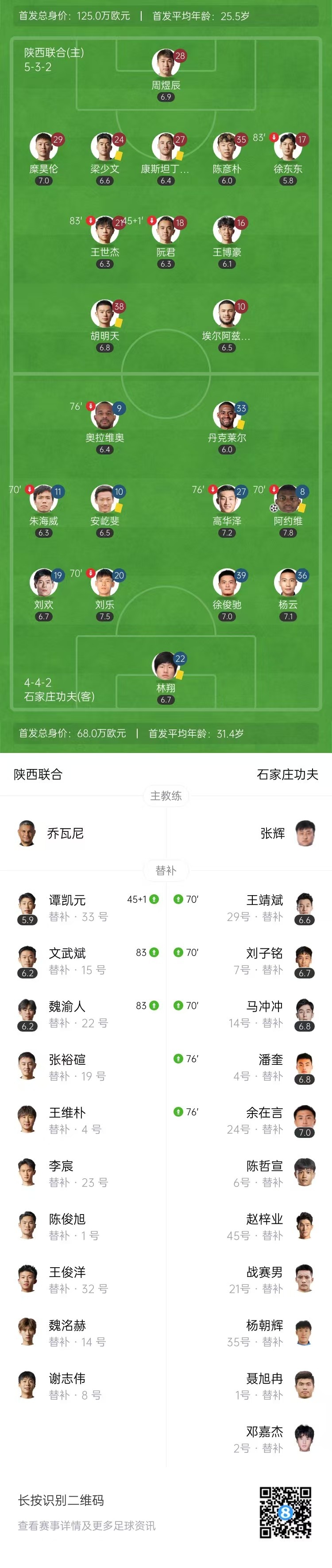 全场比赛结束,陕西联合0-1石家庄功夫。