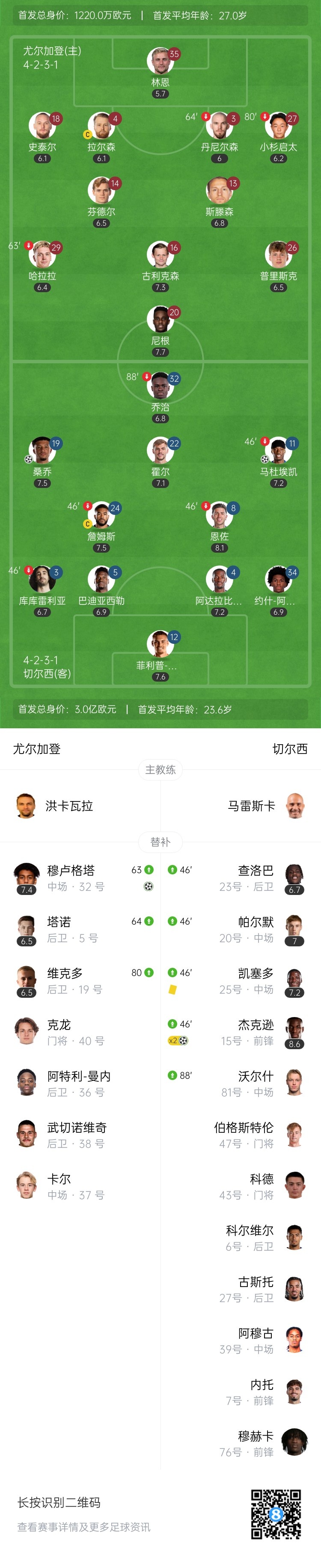 下半场伤停补时2分钟,全场比赛结束,最终切尔西4-1尤尔加登。