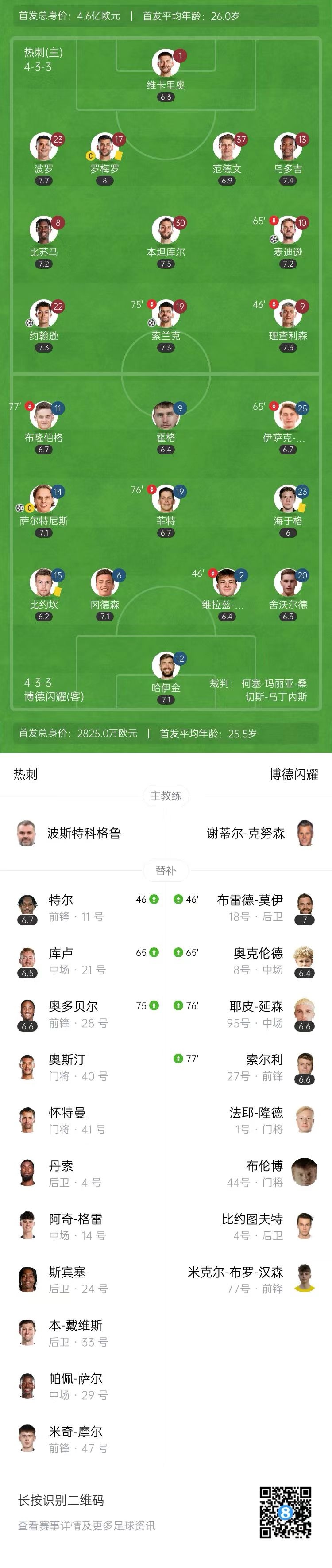 第83分钟,博德闪耀左路进攻传入禁区,萨尔特尼斯禁区内摆脱打门,皮球变线入网,博德闪耀扳回一城,1-3!↓