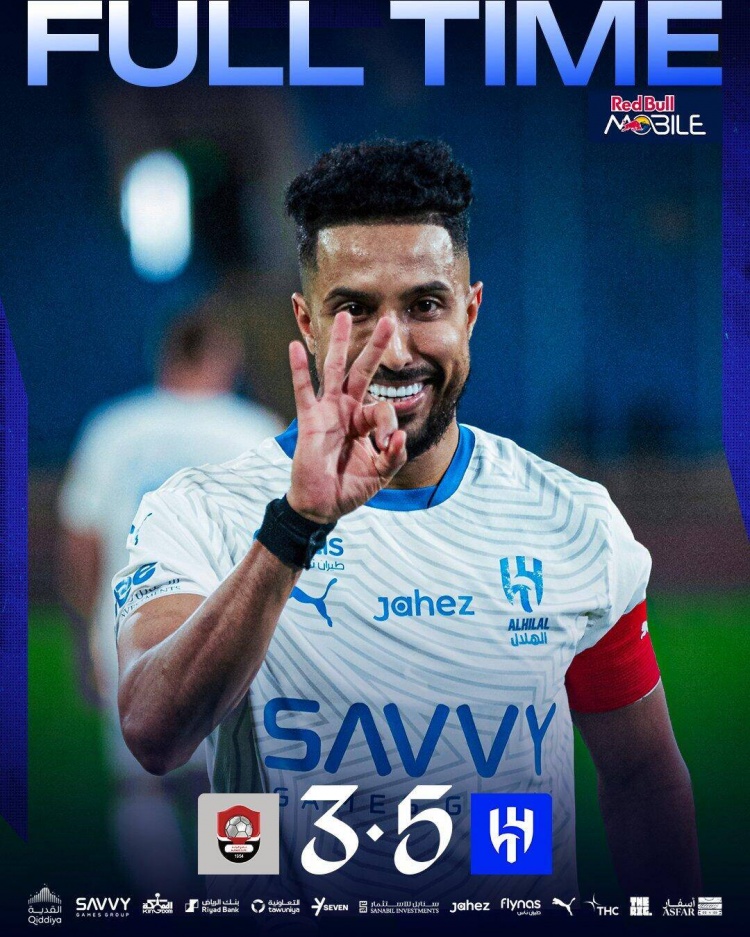 全场比赛结束,利雅得新月5-3布赖代先锋。
