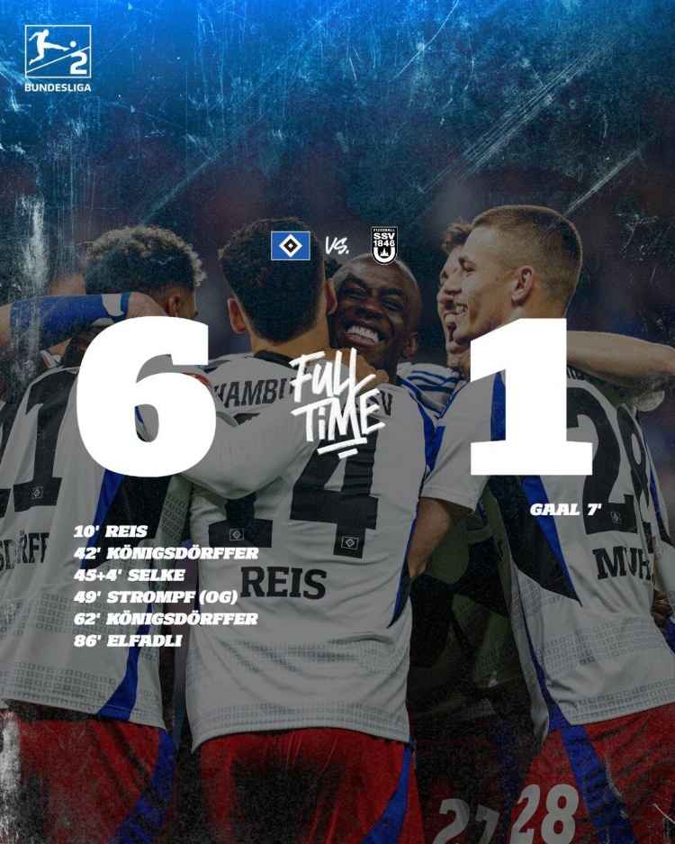 5月11日讯 北京时间5月11日02:30,德乙第33轮汉堡迎战乌尔姆的比赛在北方银行竞技场进行,上半场加尔闪击首开记录,赖特推射扳平比分,霍伊尔扑出特拉洛维奇的点球,柯尼希斯多费尔挑射反超比分,塞尔克头球扩大比分,下半场菲利普自摆乌龙,柯尼希斯多费尔劲射完成双响,丹尼尔破门锁定胜局,最终汉堡6-1逆转乌尔姆时隔七年重返德甲。
