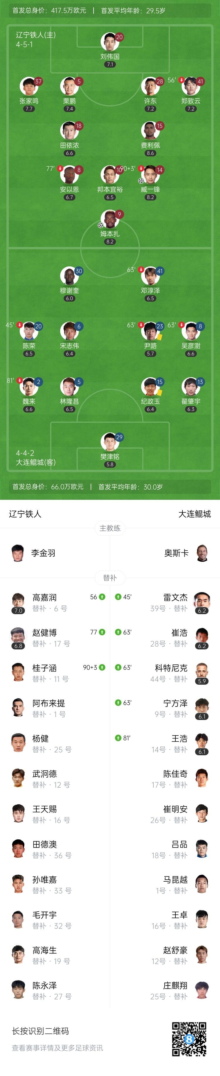 中甲-辽宁铁人2-1大连鲲城落后榜首1分 臧一锋姆本扎破门栗鹏乌龙