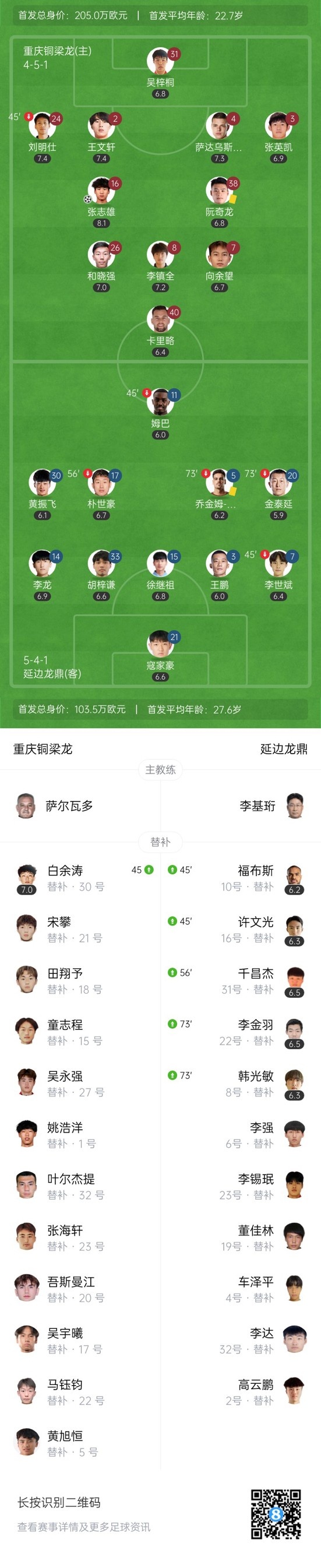 双方首发以及换人信息: