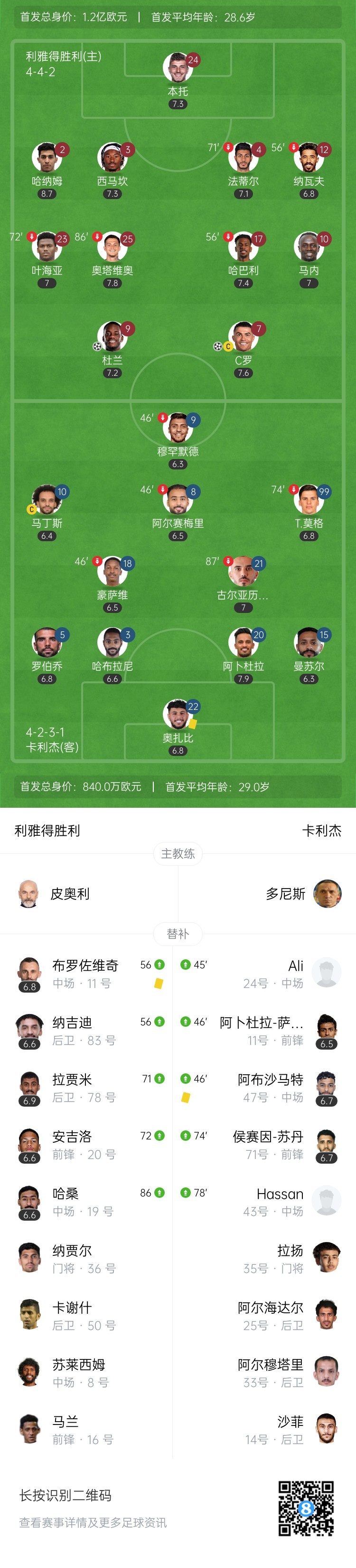 C罗第935球!利雅得胜利2-0卡利杰仍第四 C罗点射+失点+中柱