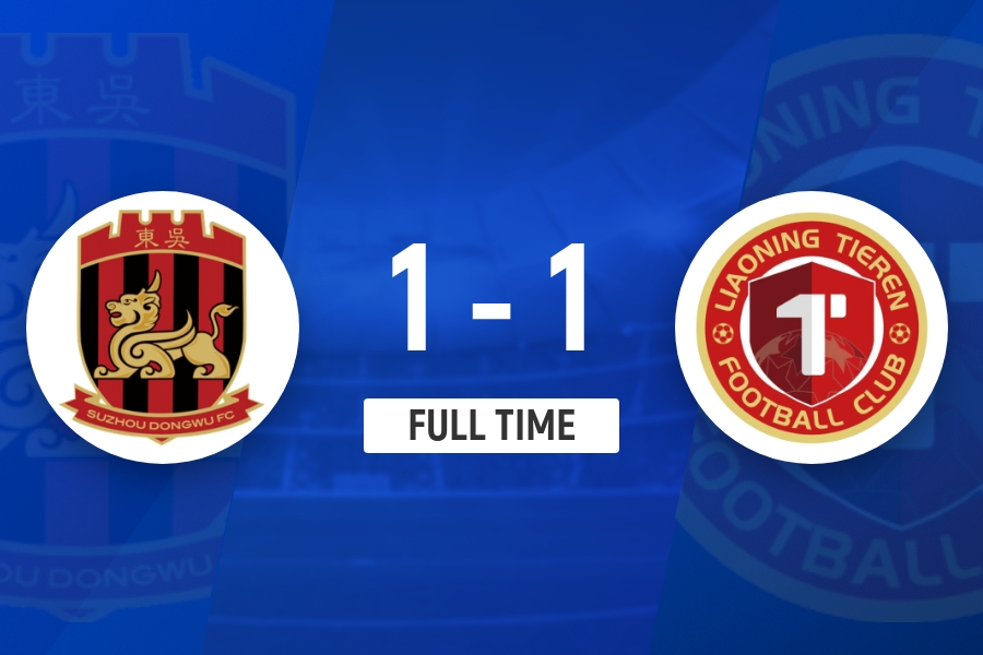 全场比赛结束,苏州东吴1-1辽宁铁人。