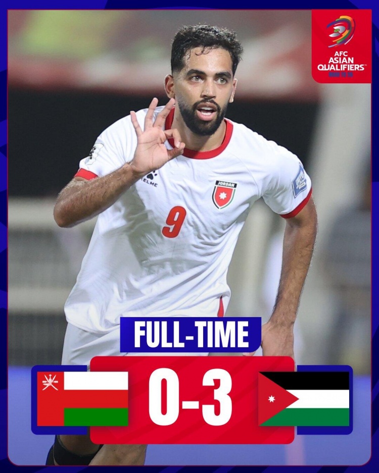 世亚预-约旦3-0阿曼仍居第二领先伊拉克4分 阿曼无缘直通