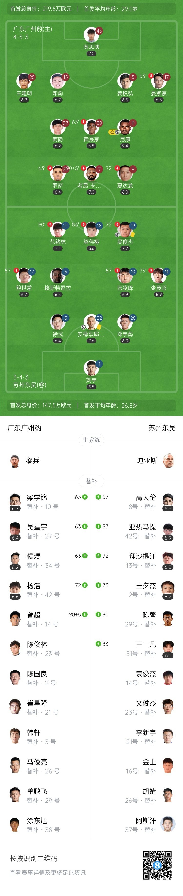 第74分钟,广州豹反超比分,尼康远射破门梅开二度,广州豹3-2领先苏州东吴。↓