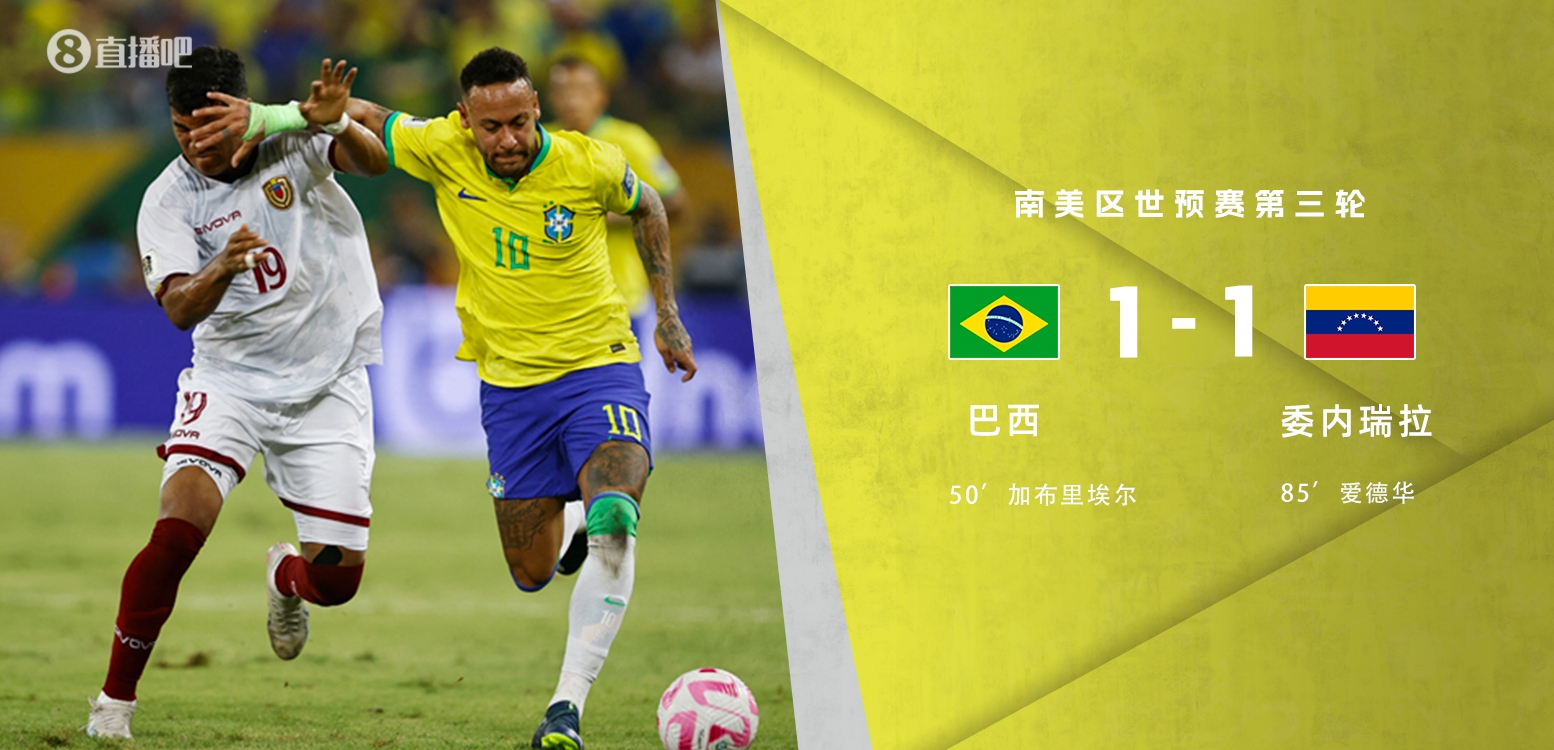 10月13日讯 世预赛南美区第3轮,巴西主场迎战委内瑞拉。上半场,内马尔发挥抢眼,达尼洛伤退,双方互有攻防但均破门乏术。易边再战,内马尔角球助攻加布里埃尔头槌破门,维尼修斯破门被吹,爱德华潇洒倒钩扳平。最终巴西1-1委内瑞拉。积分榜方面,巴西开局2胜1平积7分暂列第二,委内瑞拉积4分暂列第6。
