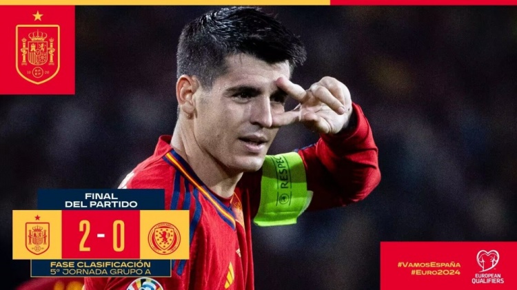 欧预赛-小麦任意球破门被吹莫拉塔头球建功 西班牙2-0苏格兰仍第2