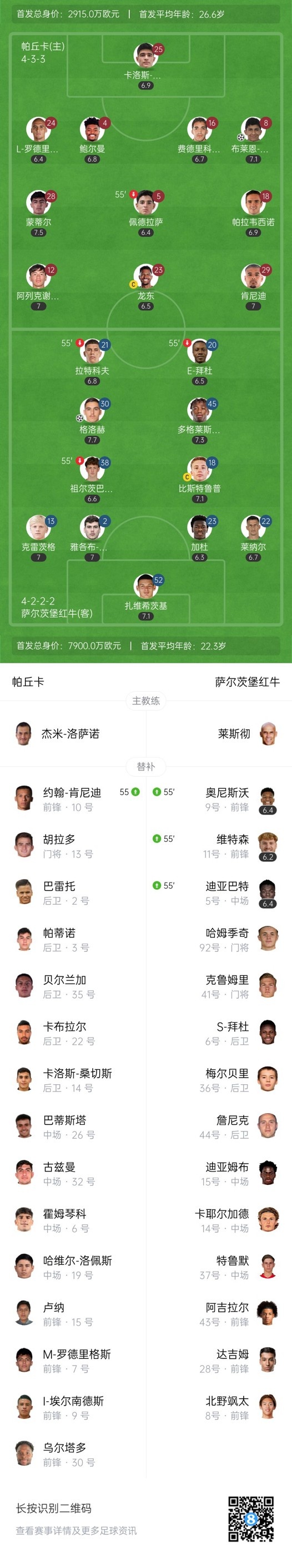 第56分钟,帕丘卡扳平比分!右路定位球机会冈萨雷斯直接打门球进,帕丘卡1-1萨尔茨堡红牛。↓