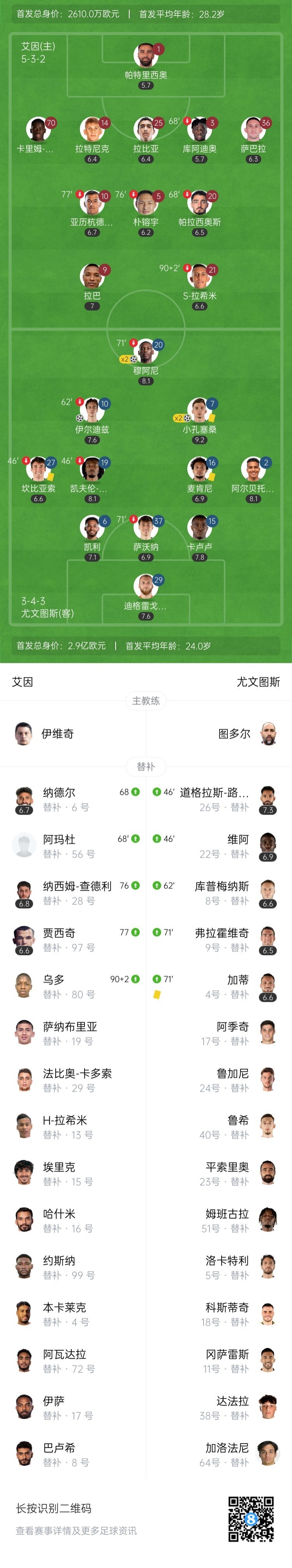 第62分钟,小孔塞桑右路得球,标志性的爆发内切!禁区中左脚抽射破门!尤文5-0领先艾因↓