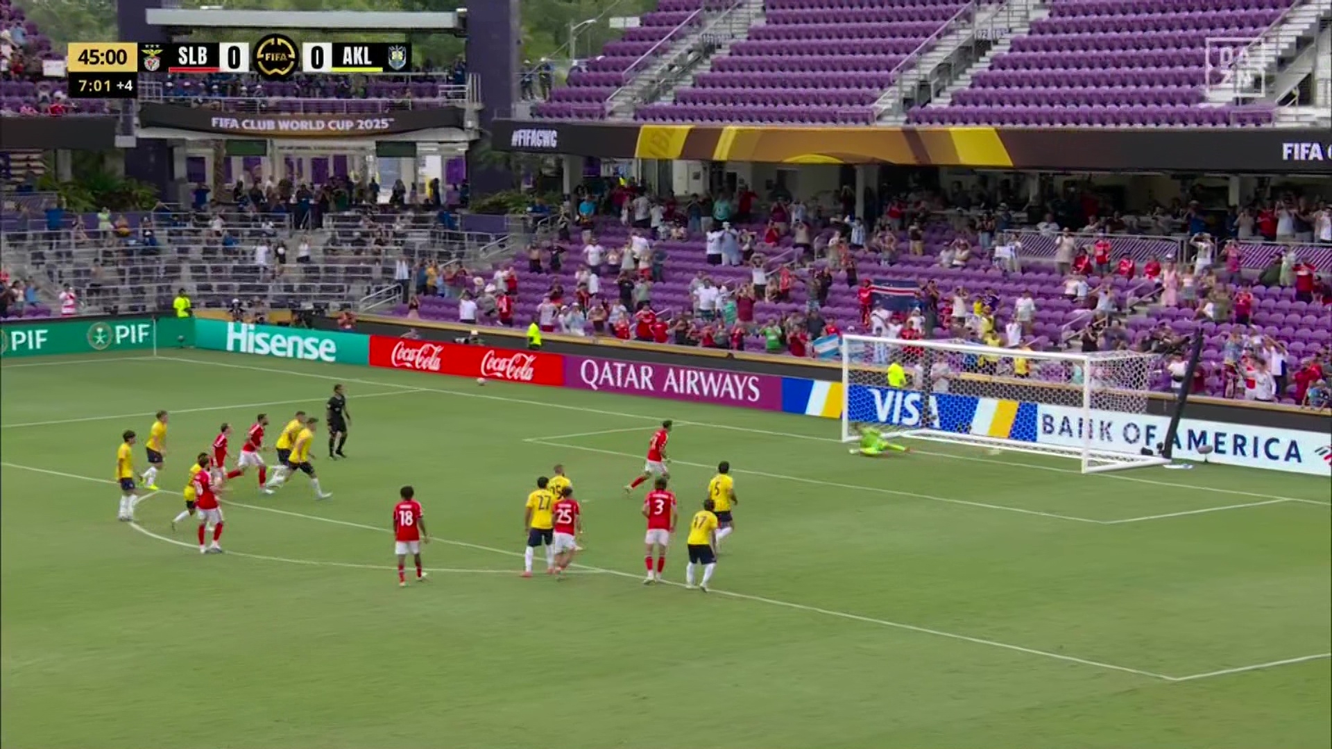 下半场补时4分钟。最终全场比赛结束,本菲卡6-0奥克兰城。
