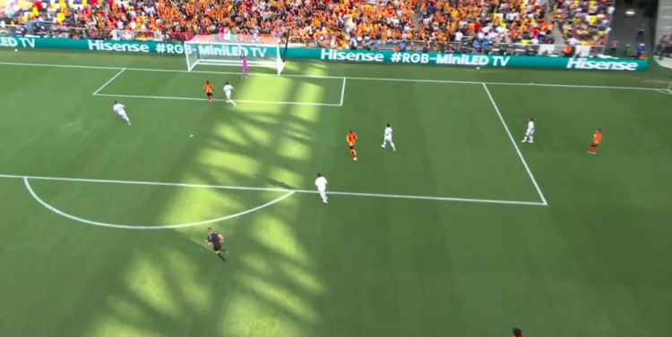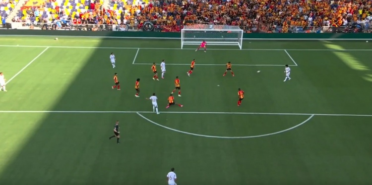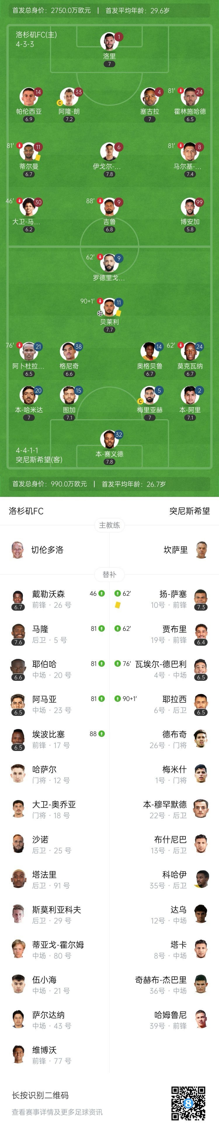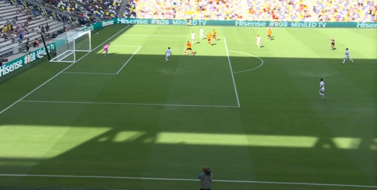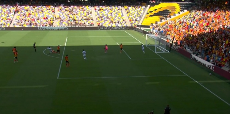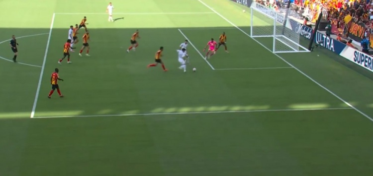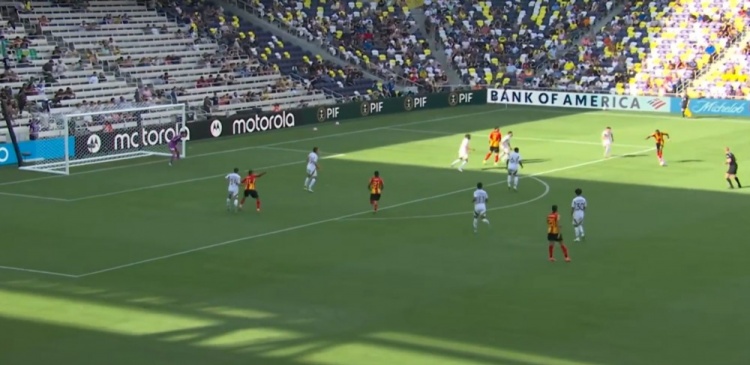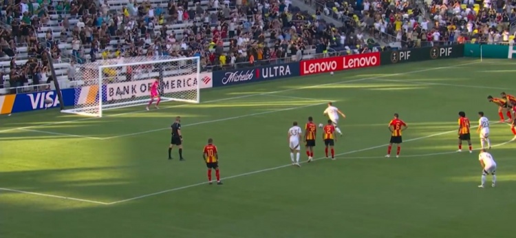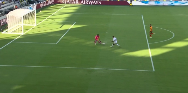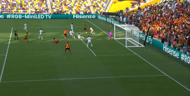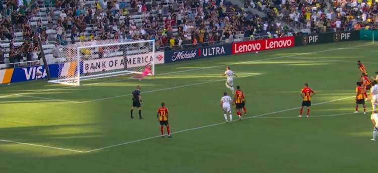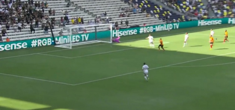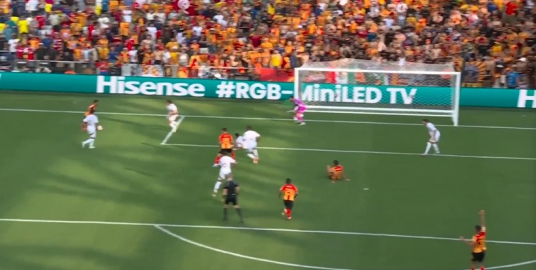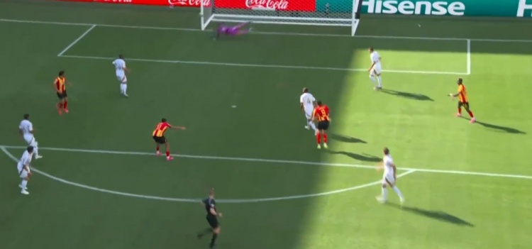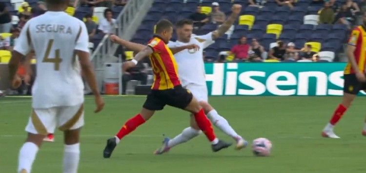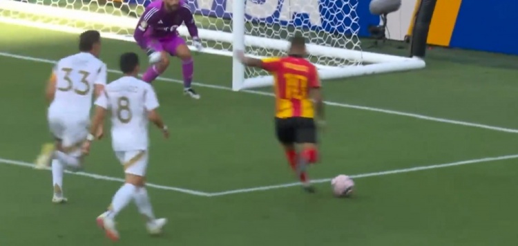 突尼斯希望领先!第70分钟,哈米达突破到禁区被破坏,贝莱利小角度得球后抽射近角,皮球从洛里两腿之间钻入网窝,洛杉矶FC0-1突尼斯希望!↓