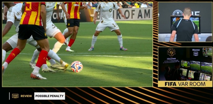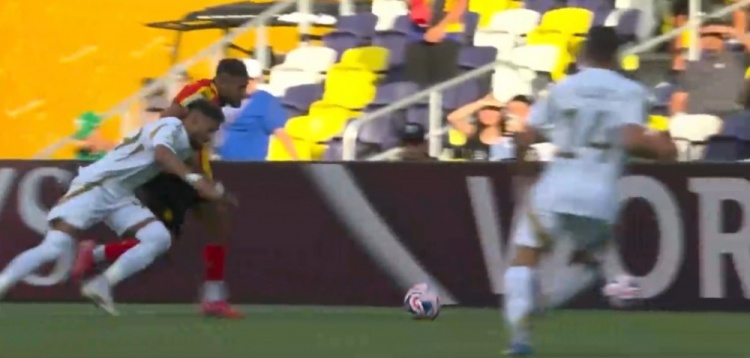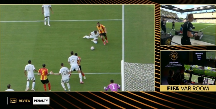 第90+8分钟,突尼斯球员禁区内解围踢翻洛杉矶球员,通过VAR,裁判判罚点球!↓