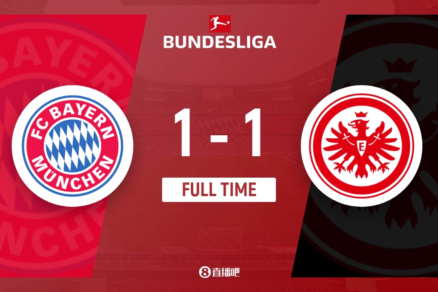 下半场补时3分钟,拜仁1-1法兰克福。