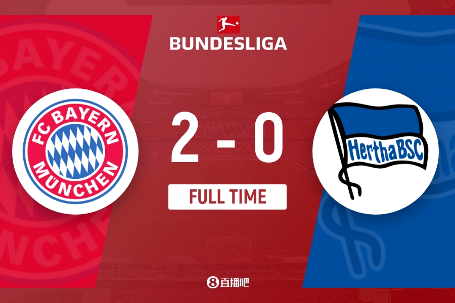 全场比赛结束,拜仁慕尼黑2-0柏林赫塔。