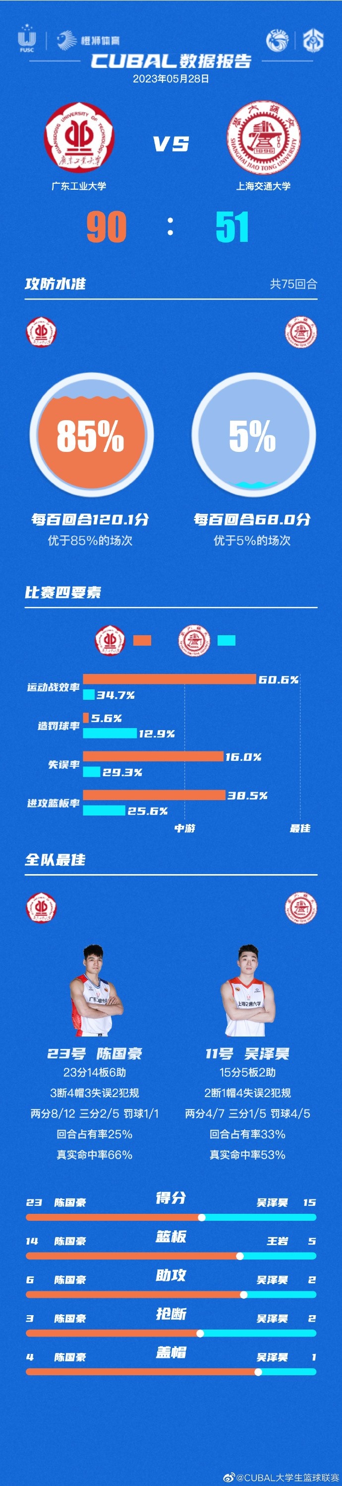 🏀CUBAL全国八强赛-陈国豪23+14+6 广工大胜上海交大先下一城