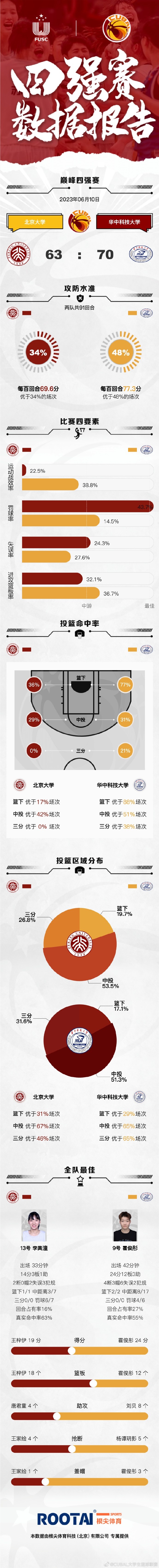 加时赛,刘贝三分上来就进,陈玉婕上篮也能锦上添花,而北京大学进攻端则是比较乏力仅靠王梓伊罚球拿到1分,霍俊彤和杨谭玥影接连上篮命中杀死比赛,最终华中科大加时70-63战胜北京大学,晋级决赛!
