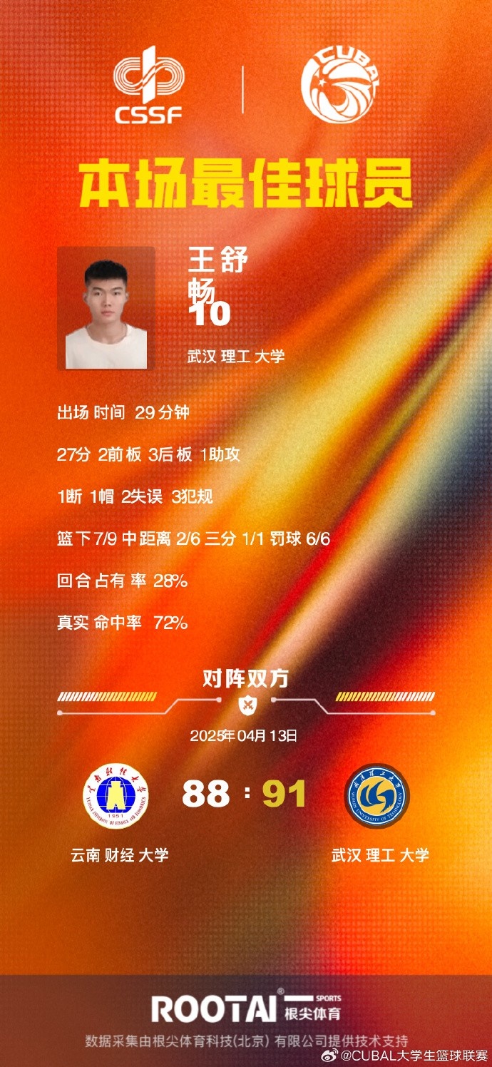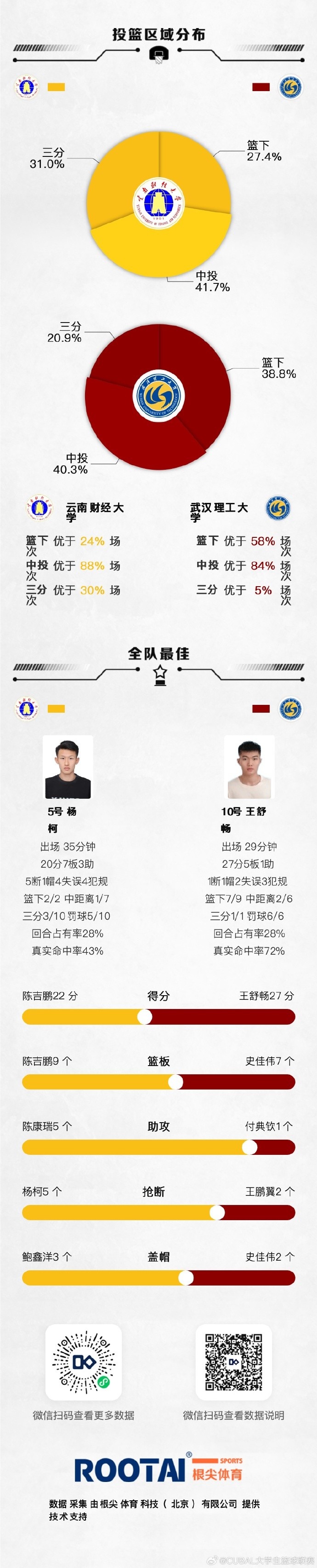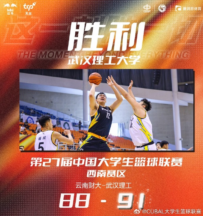 🏀CUBAL-王舒畅27+5 杨柯20+5断 武汉理工力克云南财大晋级8强