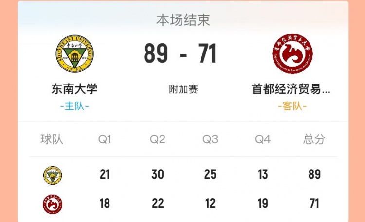 4月28日讯 CUBAL附加赛,东南大学对阵首都经济贸易大学。前两场小组赛,双方都取得了2胜0负的战绩。
