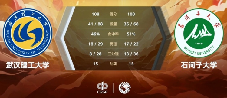 末节之争武汉理工上来就是一波7-0抢占先机,不过石河子大学也在进攻端迅速做出回应,赛力克的关键三分为球队咬住比分。但关键时刻武汉理工又是福彭义和付典钦,两人连续冲击篮下抢分重新拉开10分的领先。这之后武汉理工一路保持着10分左右的领先保持到最后,最终,武汉理工大学击败石河子大学拿下比赛。