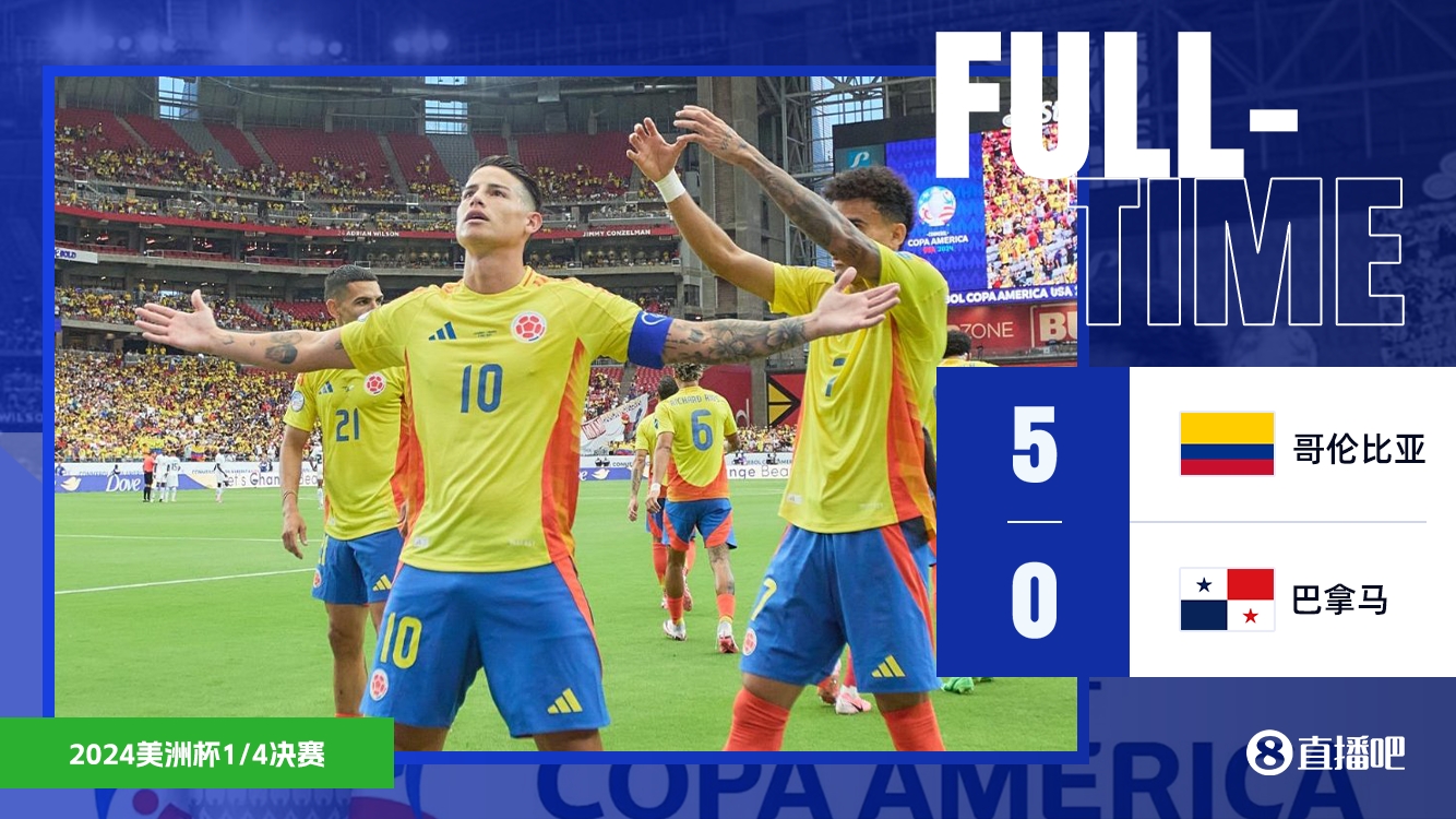 美洲杯-哥伦比亚5-0巴拿马晋级半决赛 J罗2传1射迪亚斯破门