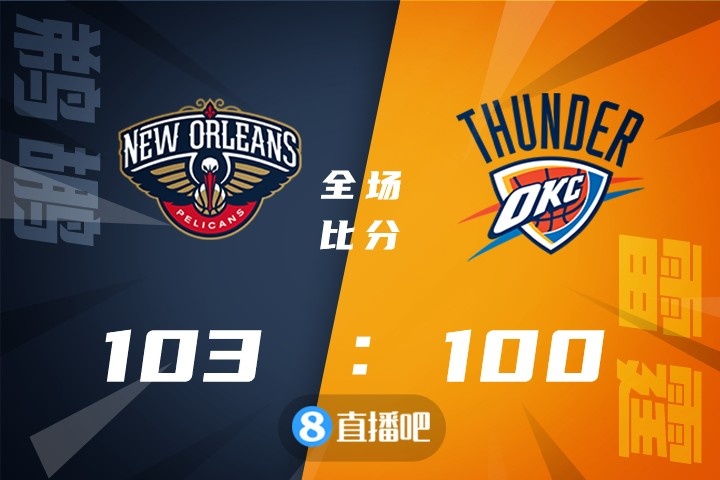 上半场,英格拉姆手感火热单节独得16分帮助球队取得领先,雷霆多点开花缩小分差,但此后却突然断电,鹈鹕打出15-0的攻击波一度将分差拉开到20分,雷霆强攻内线频频得手迫近比分,半场战罢鹈鹕60-51领先雷霆。下半场,鹈鹕命中率骤降,雷霆不断蚕食分差,末节鹈鹕及时回暖,内外开花重新占据主动,雷霆顽强追赶,双方争夺陷入白热化,英格拉姆连续拿分,雷霆绝平三分不中。最终,鹈鹕103-100击败雷霆,惊险过关。