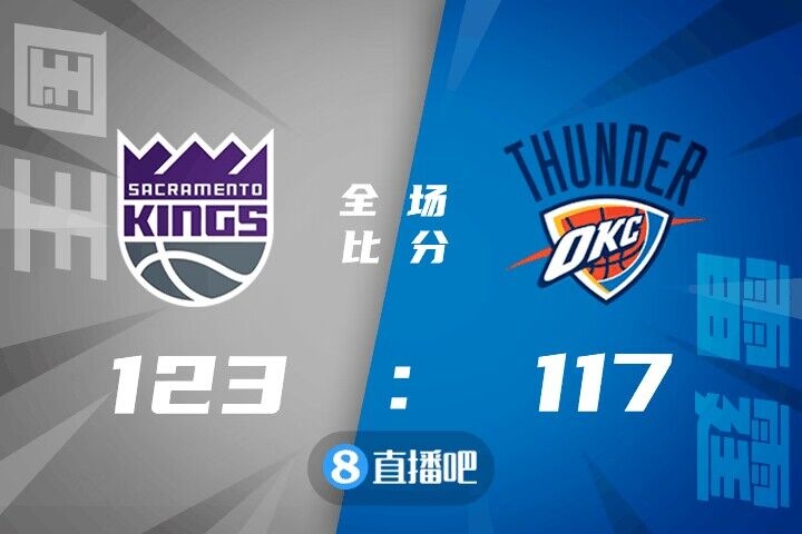 首节两队外线手感火热,双方展开对攻战,萨博尼斯单节8分5助攻串联全队,帮助国王单节得到44分,以44-38领先,次节两队进攻效率下降,进入拉锯战,半场结束国王71-66保持领先。易边再战,雷霆进攻端出现断电,国王抓住机会拉开比分,但很快自己也出现得分荒,雷霆重新蚕食分差,比赛很快进入第四节。末节回到场上,雷霆一度将比分打平,但巴恩斯随后连续取分帮助国王重新领先到两位数,比赛逐渐失去悬念,最终国王123-117力克雷霆,取得四连胜。