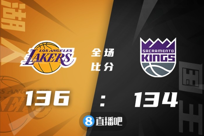 双方一上来奠定的基调就是对攻,湖人以詹姆斯和威少为轴,托马斯-布莱恩特和施罗德一内一外充分撑起湖人进攻,而国王首发五人组多点开花,全民皆兵,加上替补米切尔和莱尔斯的发挥,双方献出精彩的对飚大战。双方外线都足够准,国王三分更多,而湖人攻筐更多,威少三节就送出13个助攻,很好的串联起球队进攻,詹姆斯也连续杀内线帮助湖人建立起主动权,但福克斯连续突击内线造杀伤帮助国王继续咬住,詹姆斯关键2+1让小萨六犯毕业,但福克斯翻身跳投还是能追平比分,施罗德造杀伤两罚全中再次取得领先,福克斯绝杀三分不中,最终湖人136-134险胜国王,喜提5连胜。