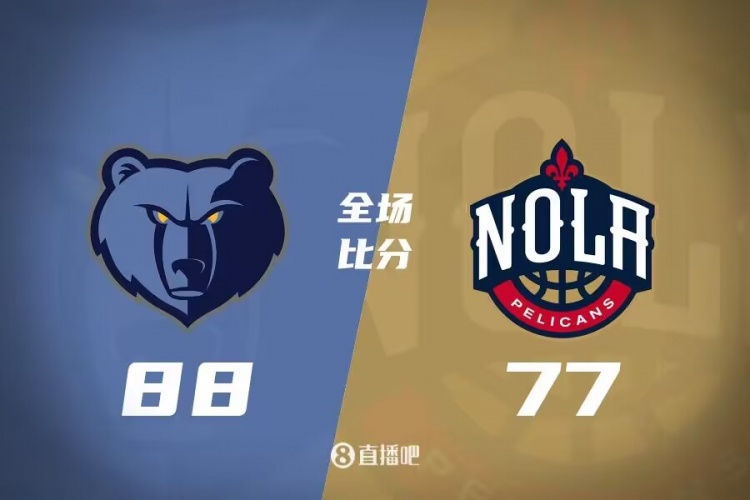 比赛开始,鹈鹕上来就接连外线命中三分,而灰熊则是靠9号秀埃迪连续内线打成并送暴扣回应,双方展开对攻拉锯战,比分拉不开,双方首节打成25平,次节双方命中率都有下降,小皮蓬又攻又传带领灰熊咬住比分,而鹈鹕则是靠霍金斯和福特撑起进攻,埃迪盖帽时扭伤脚踝,半场双方继续打成43平。下半场,小皮蓬上来接连推反击送助攻,带领灰熊一波12-3攻击波一举拉开双位数领先,鹈鹕接连冲击内线打成2+1止血,三节灰熊领先到7分,末节双方展开拉锯战,雅罗接连外线扔进三分,灰熊顺势一波7-0重新拉开双位数领先,最终灰熊88-77力克鹈鹕。