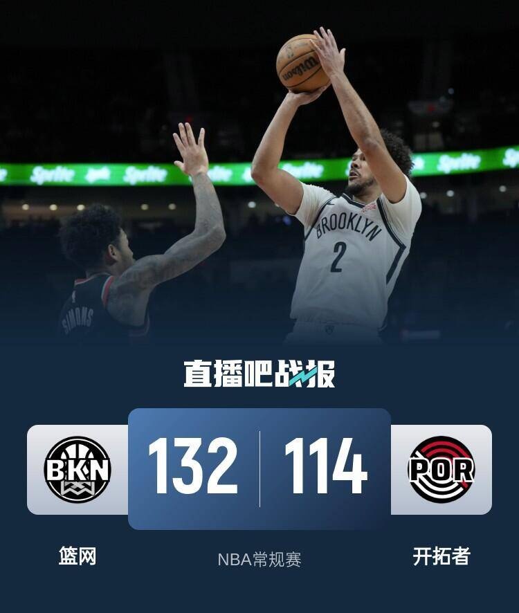 比赛开始,篮网接连三分打出8-2开局,随后篮网全民皆兵建立主动权,亨德森站出来里突外投,单节6投全中轰下17分带队追分,拉塞尔接连三分助篮网首节领先10分,次节双方继续展开拉锯战,卡马拉单节里突外投得分上双带队追分,篮网众将能回应,半场篮网继续领先5分。下半场,卡梅隆-约翰逊和克洛尼一内一外连续取分,夏普和安芬尼-西蒙斯能联手回应,双方继续拉锯战,三节篮网还领先10分,末节夏普接连突破带队追分且得分上双,篮网总能回应,拉塞尔有攻有传带队牢牢掌握着十几分领先,最终篮网132-114力克开拓者,终止5连败同时送对手3连败。