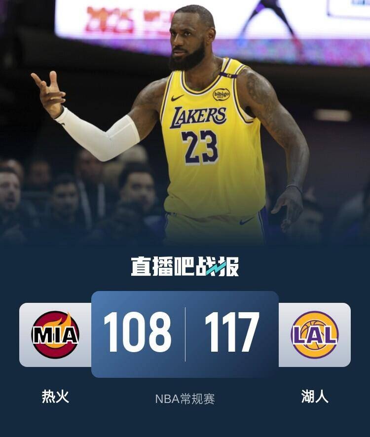 🏀詹姆斯连拿7分收比赛 希罗34分 湖人3人20+力克热火止3连败