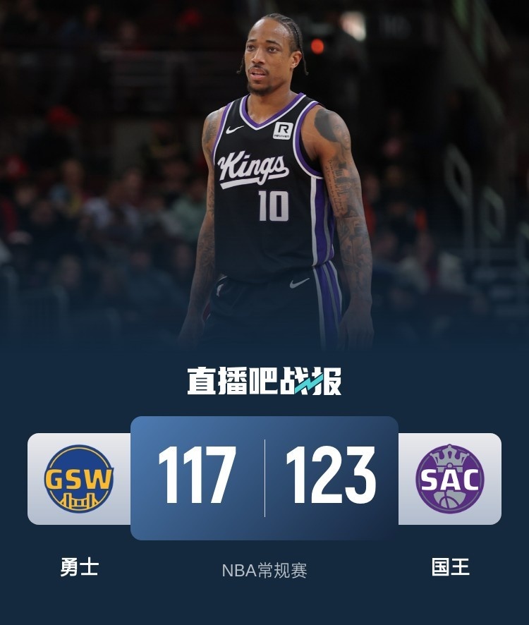 🏀国王18分逆转勇士 德罗赞32+5 库里14+12&下半场2分3失误