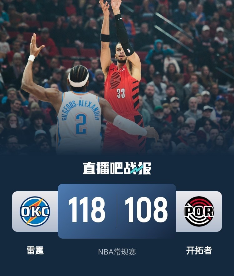 🏀鸭梨35分 杰伦威24+5+8 阿夫迪亚28+8+8 雷霆终结开拓者4连胜