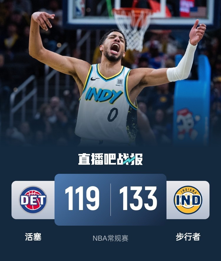 比赛上来,步行者就打得气势如虹,西亚卡姆和哈利伯顿外线神准,防守端特纳也是逼迫康宁汉姆8秒违例并大帽奥萨尔,分差迅速达到两位数,次节斯图尔特与布莱恩特再起冲突,被直接驱逐出场,步行者此后也将分差继续扩大到二十分,好在是活塞此后发起反扑,半场结束时分差还剩10分;下半场回来,活塞继续追分,分差最小时仅剩4分,好在是步行者此后及时给出回应,分差在末节重新拉开到两位数,活塞没有再获得机会,最终步行者力克活塞,送给后者三连败。