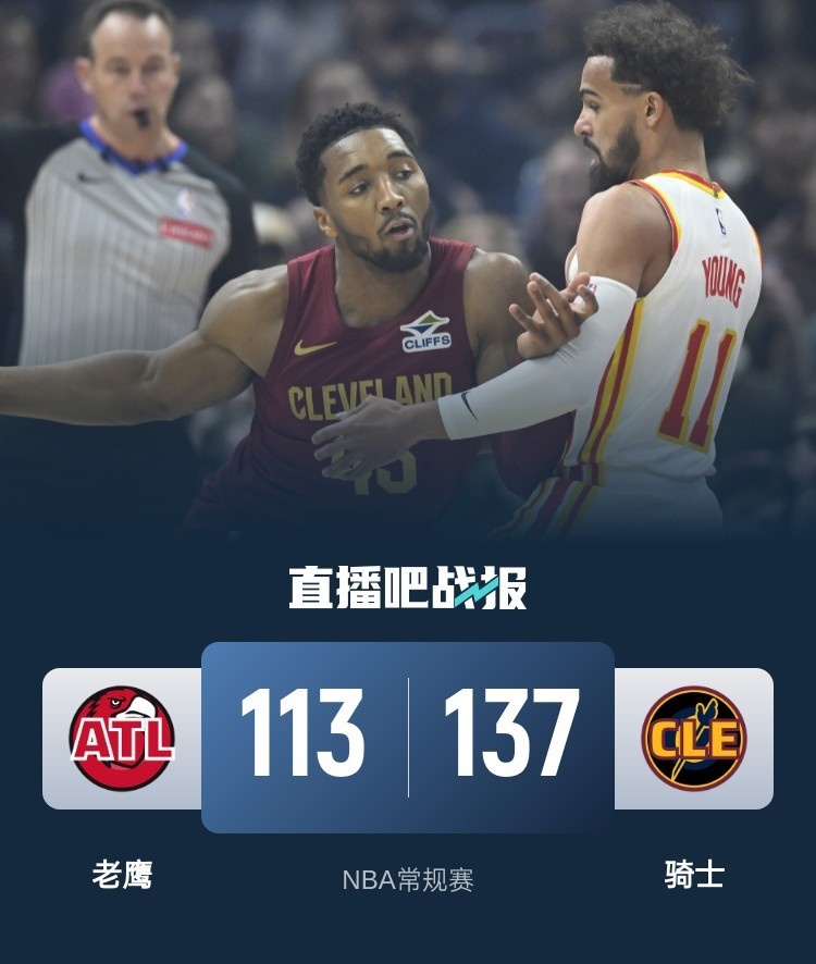 🏀加兰26+7 里萨谢30分 吹杨16中5 骑士3人20+送老鹰7连败