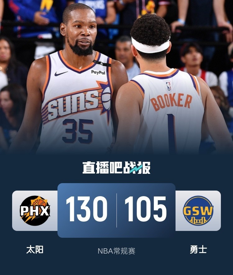 🏀布克31+11 杜兰特19+6 库里14分&上半场仅2分 太阳大胜勇士