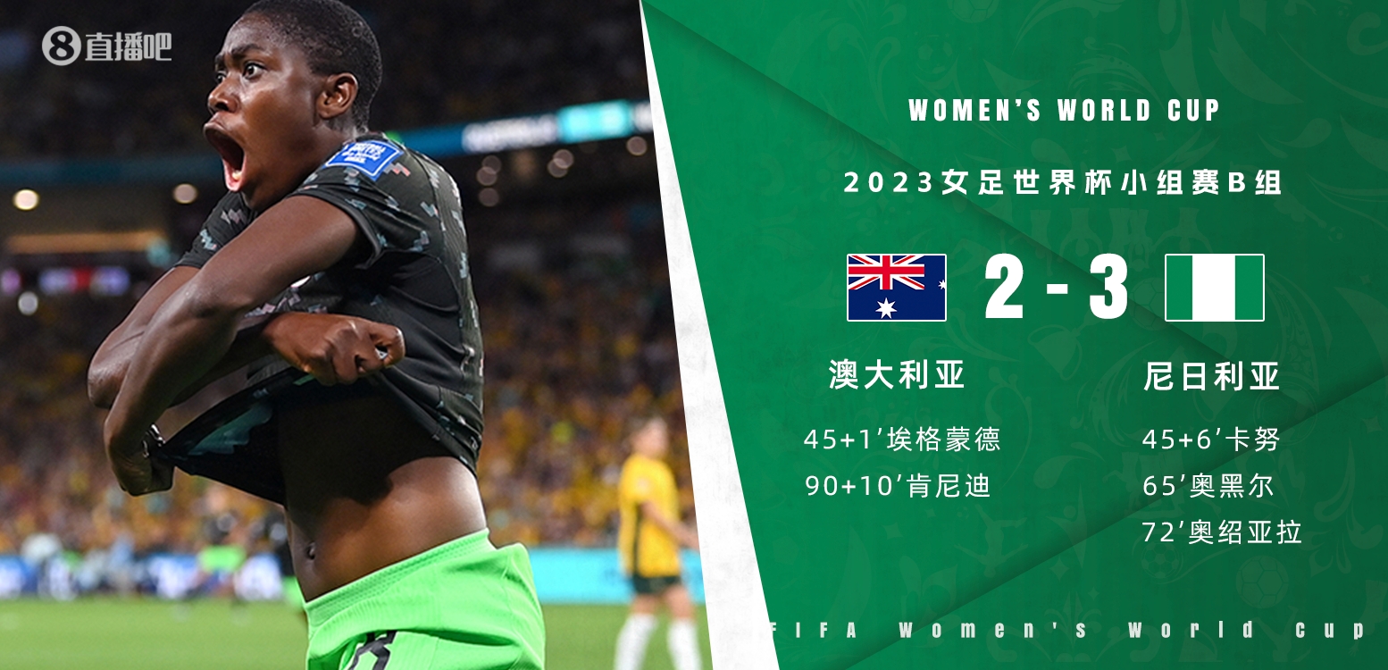 女足世界杯-尼日利亚3-2澳大利亚升至B组第一,奥绍亚拉破门脱衣庆祝