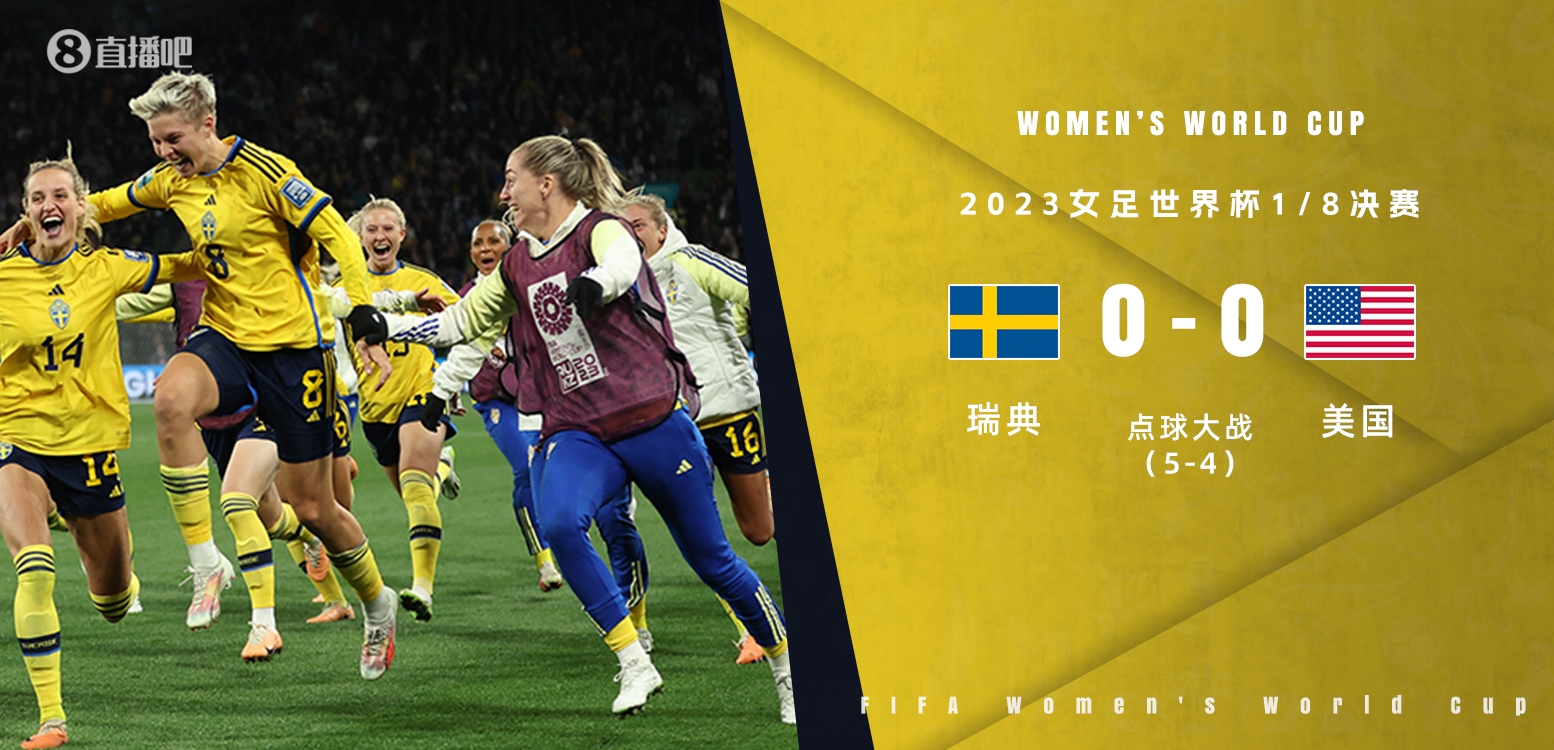 女足世界杯-卫冕冠军出局!美国点球4-5瑞典遭淘汰 瑞典进8强战日本