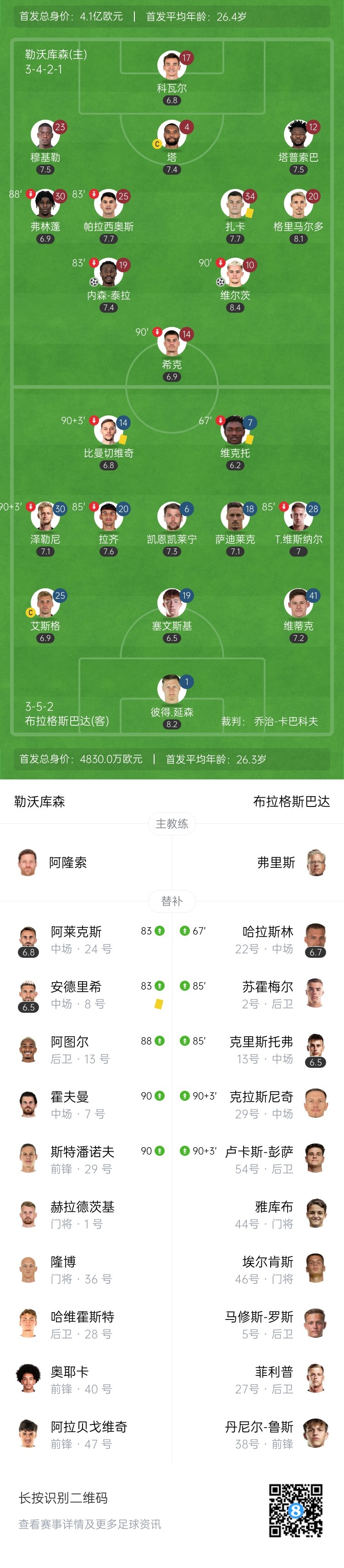 第32分钟,勒沃库森反击机会,右路弗林蓬得球快速推进到禁区回做,维尔茨不停球直接抽射远角破门,勒沃库森1-0领先↓