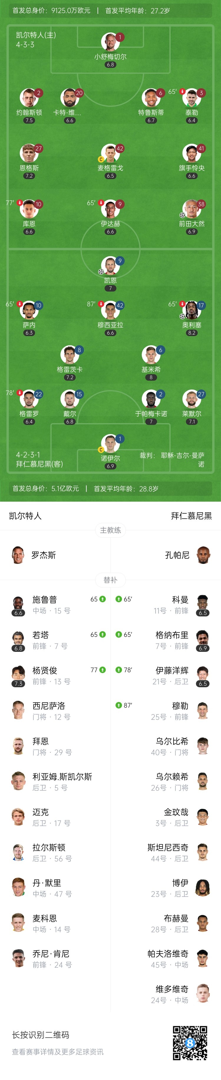 第49分钟,拜仁角球机会,后点凯恩无人盯防,左脚凌空抽射破门,拜仁2-0凯尔特人。↓