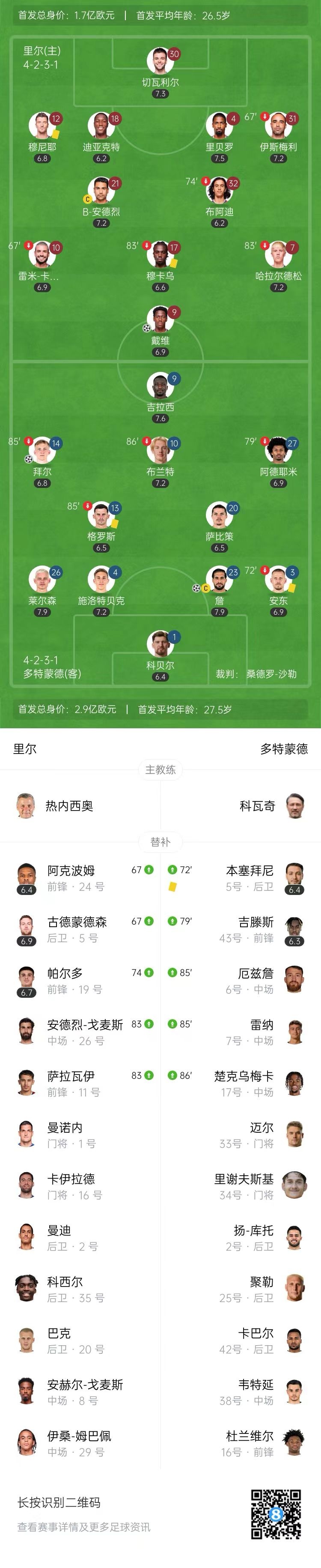 第32分钟,安东战术犯规阻止里尔反击,主裁判向其出示黄牌。